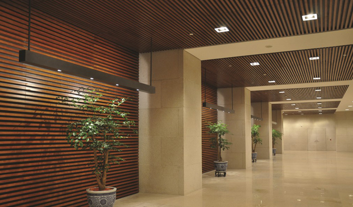 墙面铝方通吊顶是一种铝材通风挤压成型,产品硬度,直线度远远超过其它产品,整体效果比板材铝方通要好,多数型号需要定做磨具再生产;线条明快飘逸,选用适当的高度,以适当视角角度,能产生幕布效果