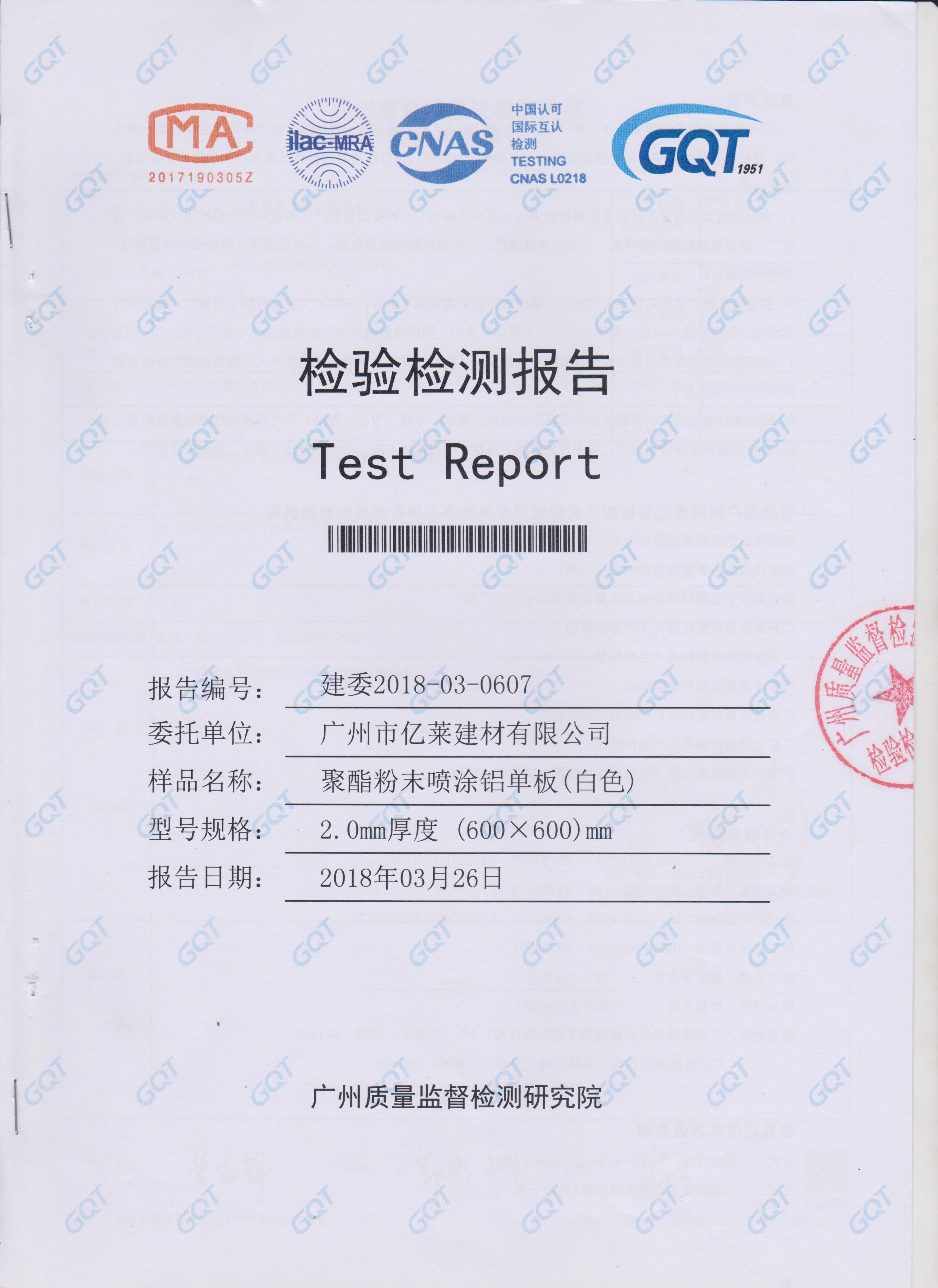 聚酯粉末喷涂铝单板(白色)检测报告-1