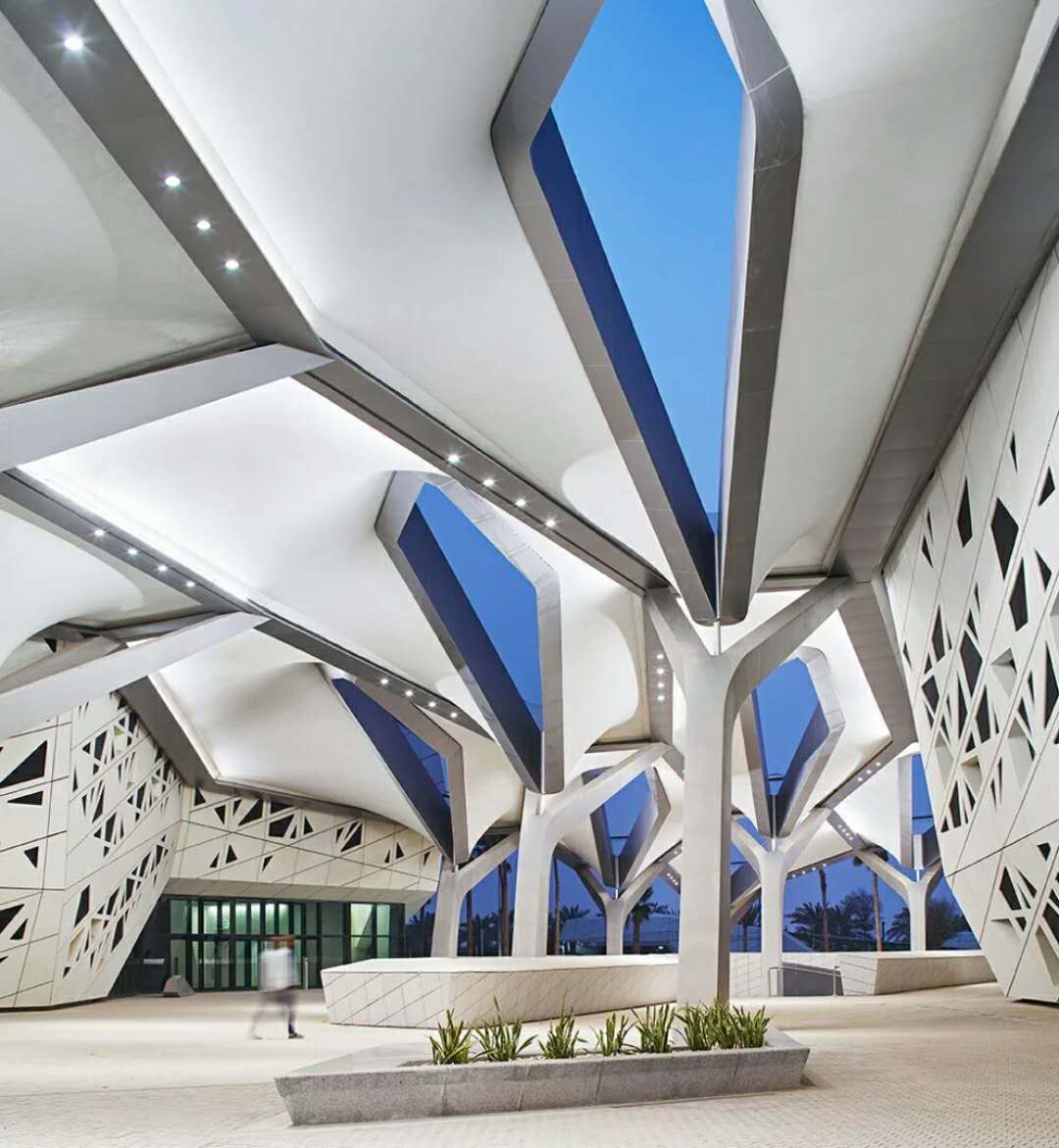 铝单板的应用范围:幕墙铝单板适用于各种建筑内外墙、大堂门面、雨篷、柱饰、高架走廊、人行天桥、电梯包边、阳台、广告指示牌、室内异形吊顶等装饰。