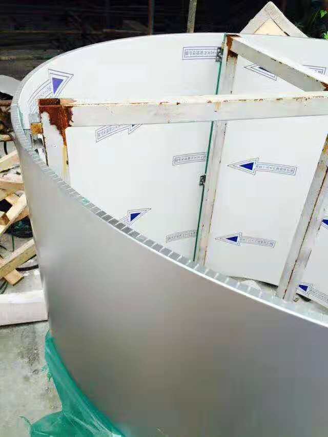 铝蜂窝板采用高强度3003铝合金作面板,高密度铝蜂窝芯做芯材,面板常规厚度为0.8mm,1.0mm,板总体厚为10mm,15mm,25mm。其它规格结构和尺寸可根据需要设计和制造,以满足各种用途的需要。