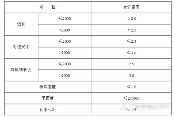 4、铝单板加工尺寸允许偏差:单位(mm)